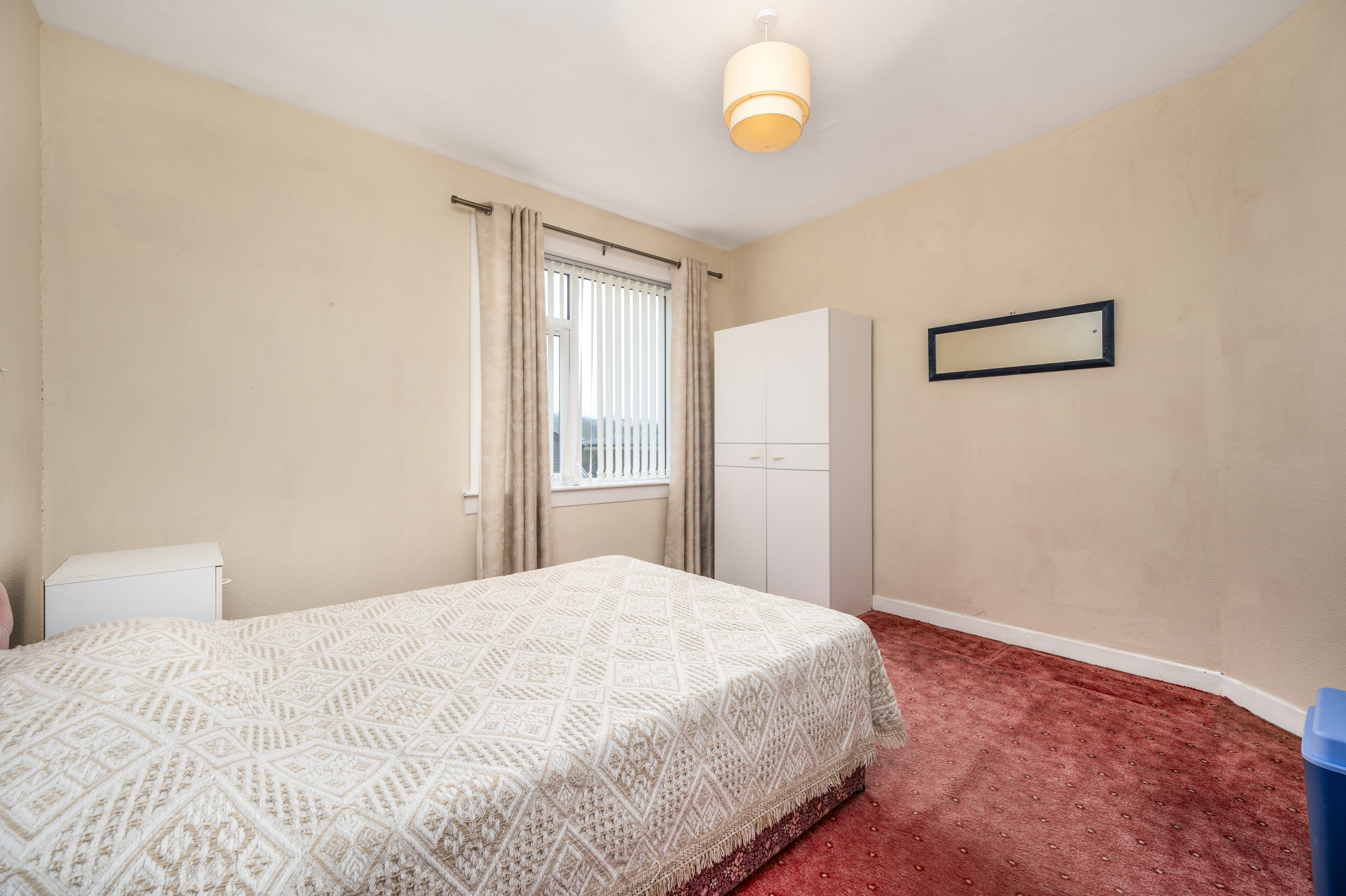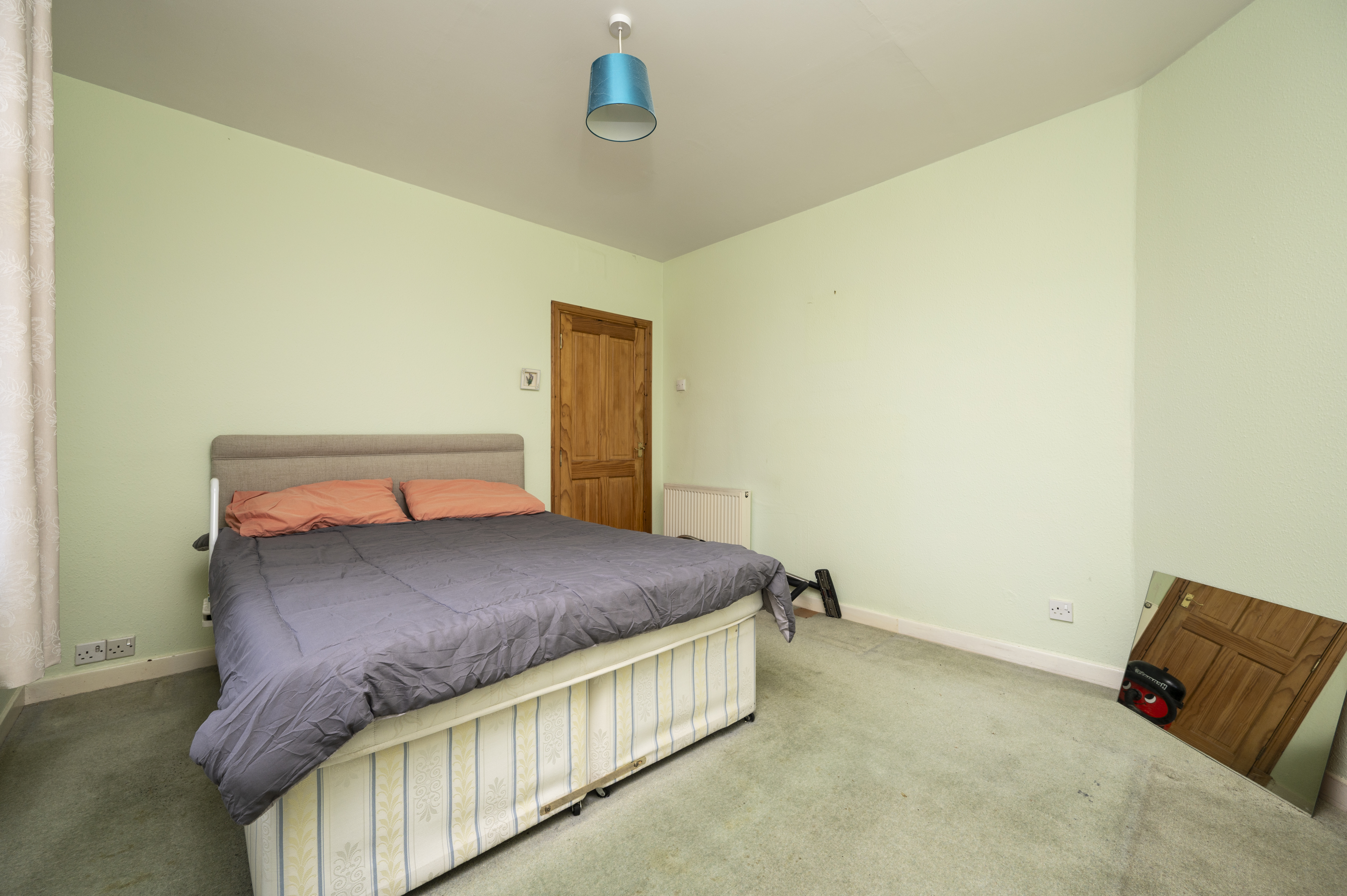 Another nicely proportioned bedroom with rear facing window, overlooking the garden, fitted with vertical blinds and curtains. Carpet.