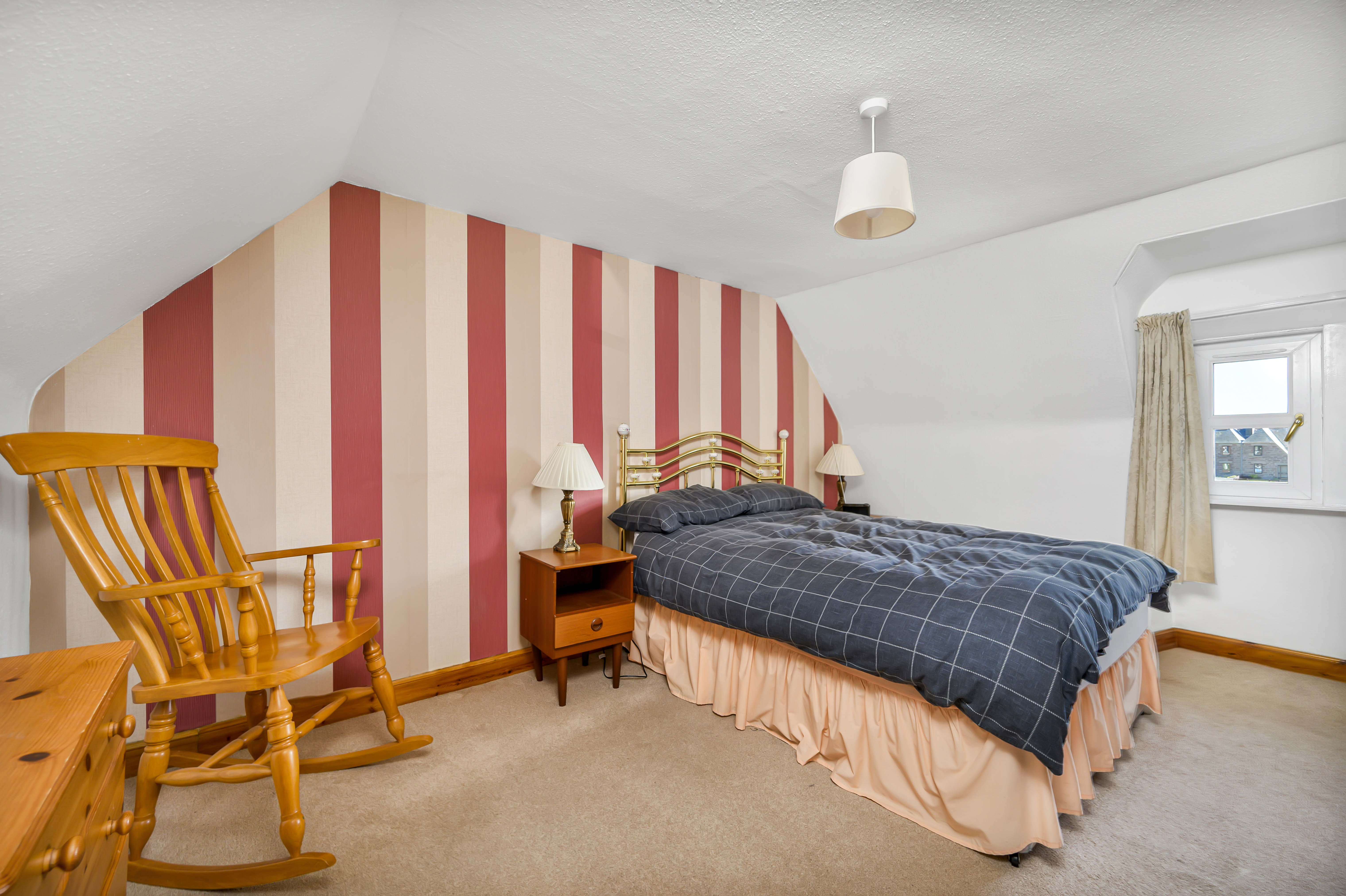 Generous sized room with rear window enjoying views out to the Ben Bhraggie Monument. Built-in wardrobe with hanging rail, shelving and double doors. Small window through to study. Carpet. Radiator.