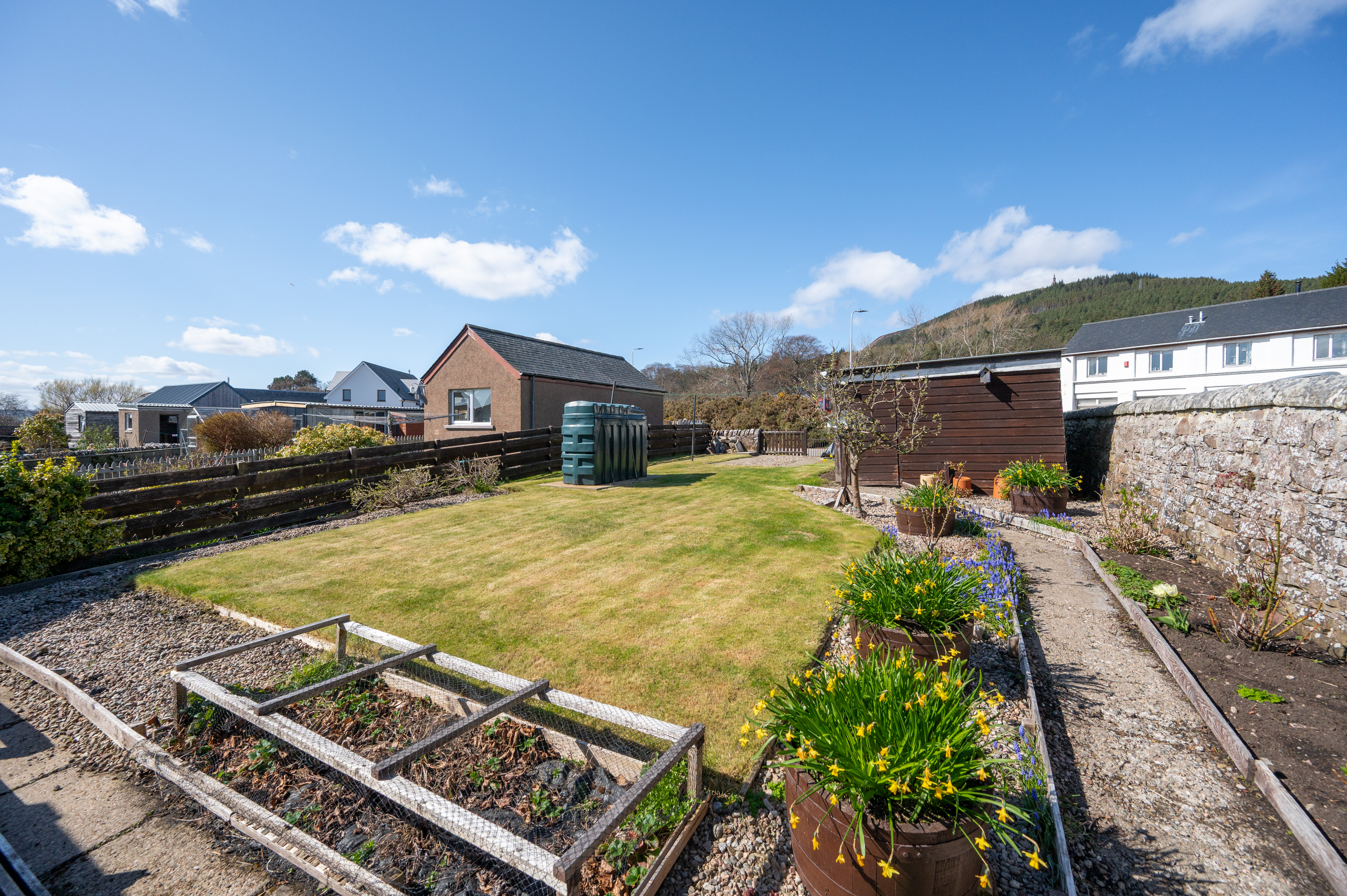 The property sits in nicely landscaped garden ground which lies to the front, side and rear and has been mainly laid to lawn with attractive flower beds providing plenty of colour throughout the summer months. Steps and a path leads round from the front to the rear garden. Greenhouse. Garden shed. Oil tank. Off street parking is available at the rear off Station Road.
